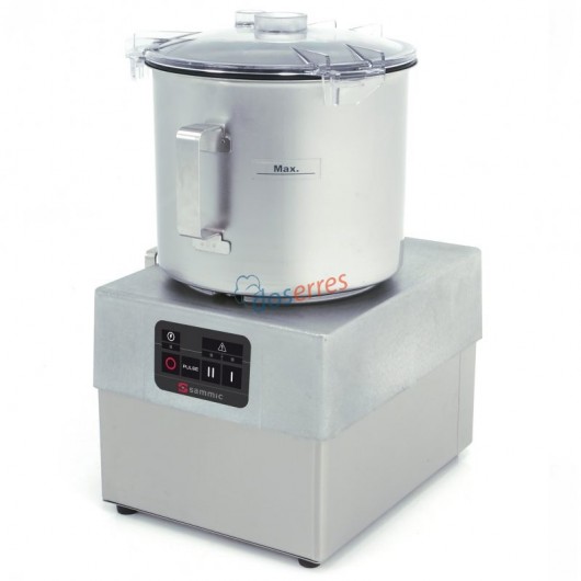 Cutter Sammic, picadora y mezcladora para cortar, triturar, mezclar, amasar cualquier alimento en segundos: Hierbas y verduras, masas diversas, carnes crudas o cocinadas, pescado, etc. Con capacidad de 8 litros. Con cuchillas de uso general. Disponibles otras opciones en cuchillas.