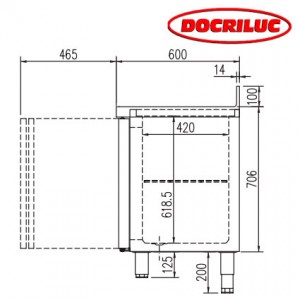 Datos técnicos de la mesa refrigerada Docriluc.