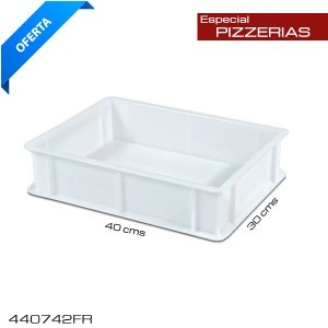Caja de plástico apilable para colocar las bolas de pizza. Caja de pizzas de 30x40x7 cms