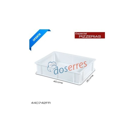 Caja de plástico apilable para colocar las bolas de pizza. Caja de pizzas de 30x40x7 cms. Un indispensable en su pizzería.