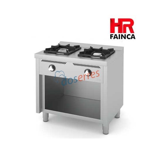 Cocina de 2 fuegos con soporte del fabricante nacional HR Fainca. Cocina fabricada en acero inoxidable, con fuegos superiores de gran rendimiento calorífico niquelado.
